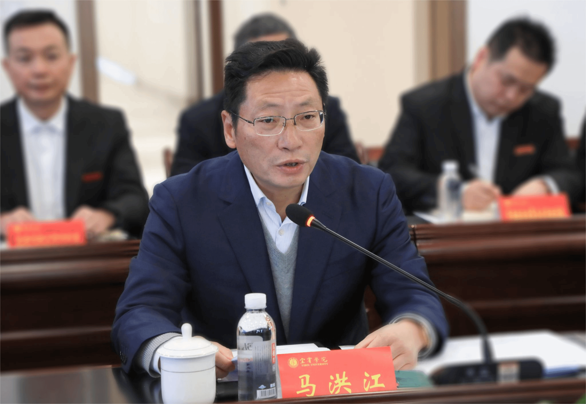 宜宾学院党委书记马洪江致辞。他代表全校师生向参加本次评估工作的各位专家表示热烈欢迎,向一直以来为宜宾学院发展建设给予大力支持的兄弟院校表示衷心感谢。马洪江指出,为深入贯彻落实习近平总书记来校视察重要指示精神和党的二十大精神,进一步提高人才培养质量,高质量推进本科教育教学审核评估,学校高度重视预评估工作,专门成立预评估工作领导小组、预评估工作办公室和9个专项工作组大力推进相关工作。他希望各位专家对学校人才培养质量体系深入把脉问诊,为进一步改进工作、提高教学质量、顺利推进审核评估开出良方妙药。学校将全力做好服务保障,落实好专家们的意见建议,力求通过这次预评估,进一步完善人才培养质量保障体系,确保高质量完成各项迎评准备工作。
